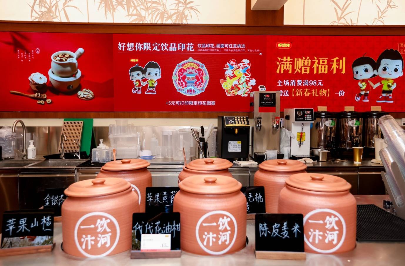 此外,店内两大体验场景,进一步将文化从“不雅看”升维至“感知”。在“百喜工坊”,搭客可亲手盖下喜字钤记,寓意“喜字留印”,将个东谈主的风光一会儿不灭定格。而在“一饮汴河茶坊”,宋代盛行的“熟水”饮品被立异复刻,并搭配现代奶盖,重现了李清照笔下“豆蔻连梢煎熟水”的好意思丽,简直让古意与新意在一杯中暖和相逢。