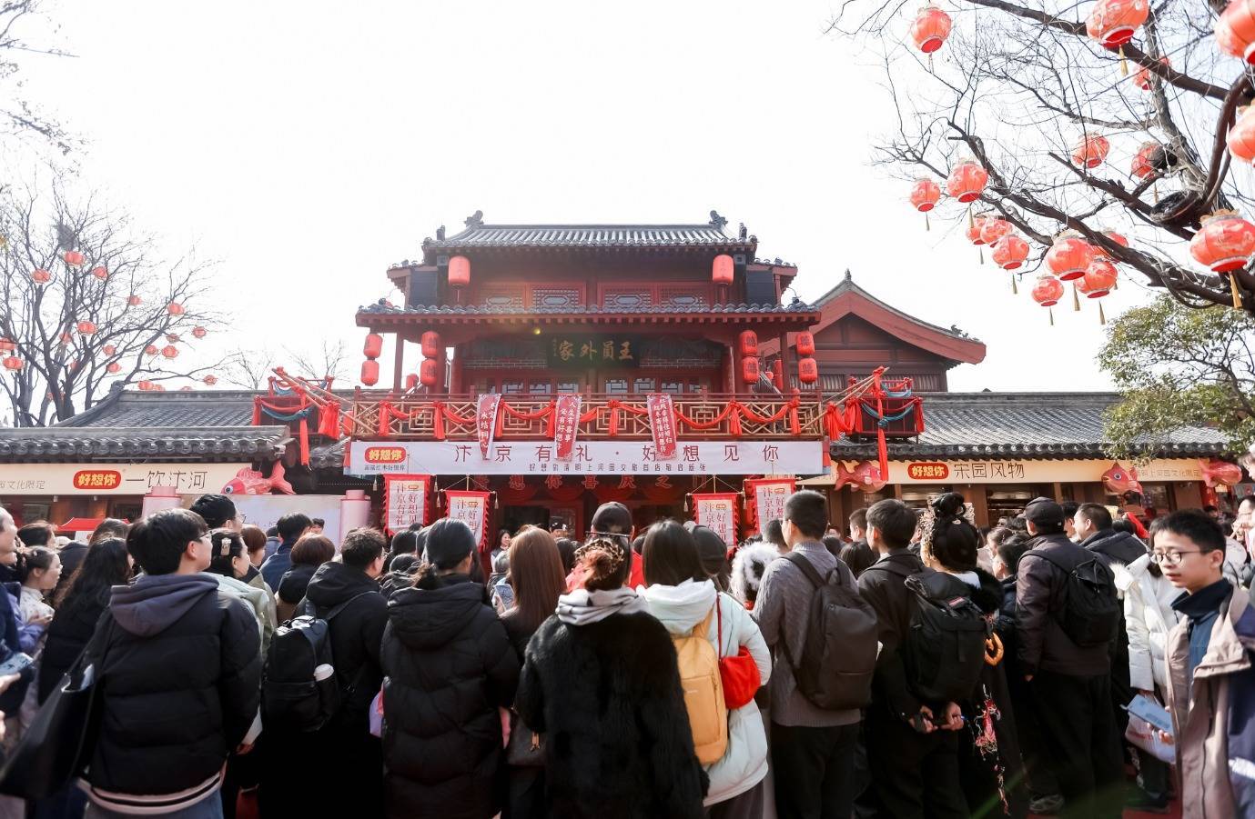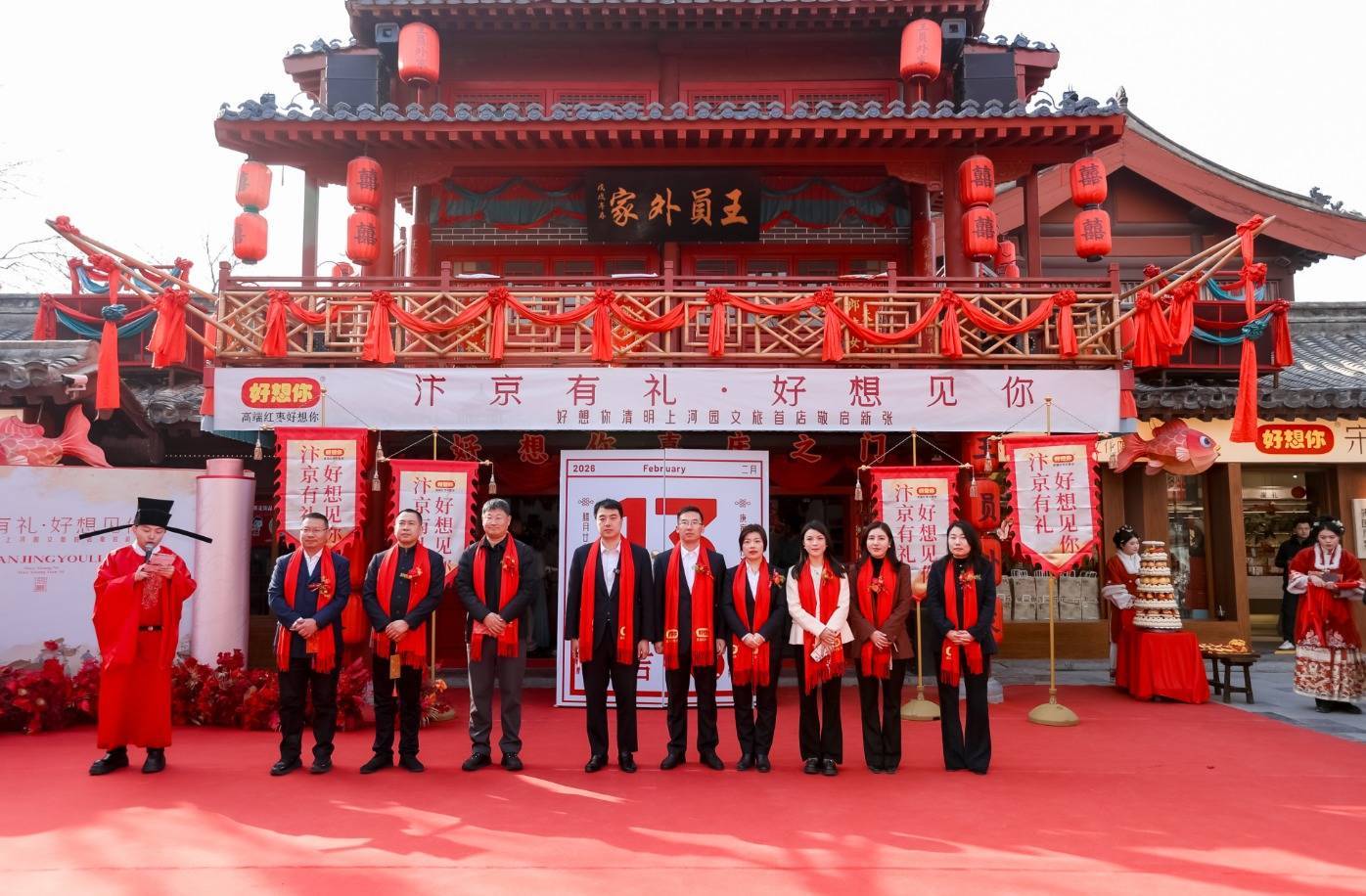 2月13日,农历腊月廿六,开封晴朗上河园内张灯结彩,年味浓郁。一场以“汴京有礼,好念念见你”为主题的开业盛典在此举行——好念念你晴朗上河园文旅首店认真亮相。