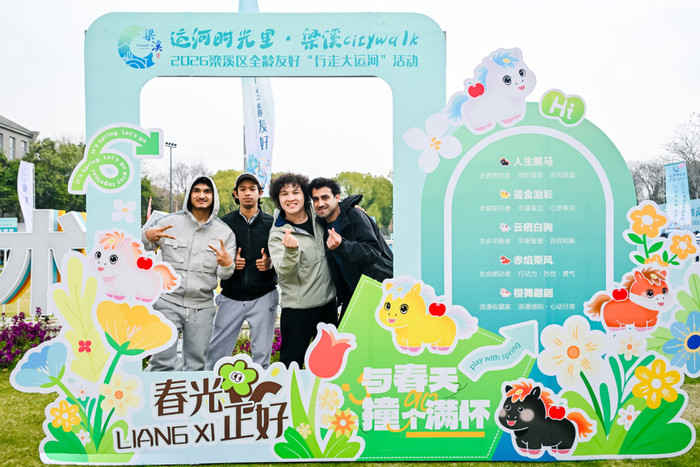 “在春日里沿着古运河踱步,既能玩赏一齐欢腾,又能考核躯壳,这简直太有真谛了!”来自乌兹别克斯坦的在锡留学生Doston在徒步途中说谈,说话间尽是对梁溪的爱好。
