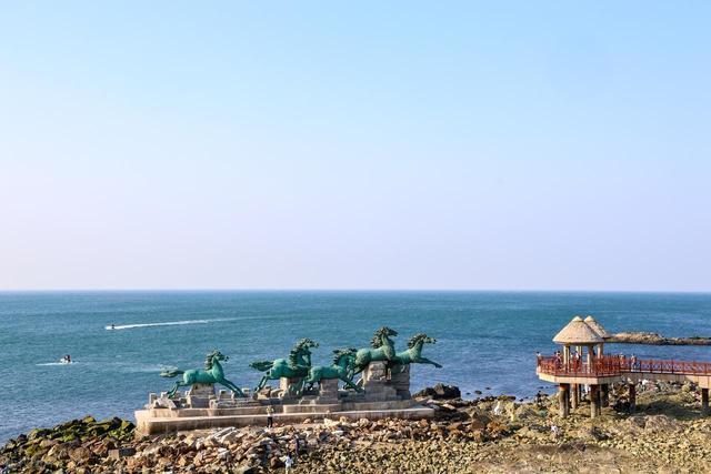 养马岛环岛骑行,果冻色玻璃海水质不输南边海域。獐岛木栈说念,峭壁海景视角,红白灯塔配蓝海超出片。