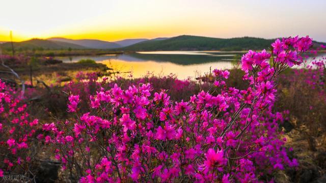 5月杜鹃湖沿岸野杜鹃盛放,白狼峰顶等一场粉色清晨,中国温泉博物馆泡火山岩冷泉。