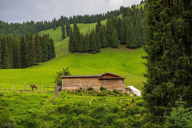 琼库什台保留着最原始的哈萨克族屯子风貌,5-6 月,这里的草原如绿色绒毯,远方的雪山和参差有致的板屋,构成了初夏的皑皑光景。